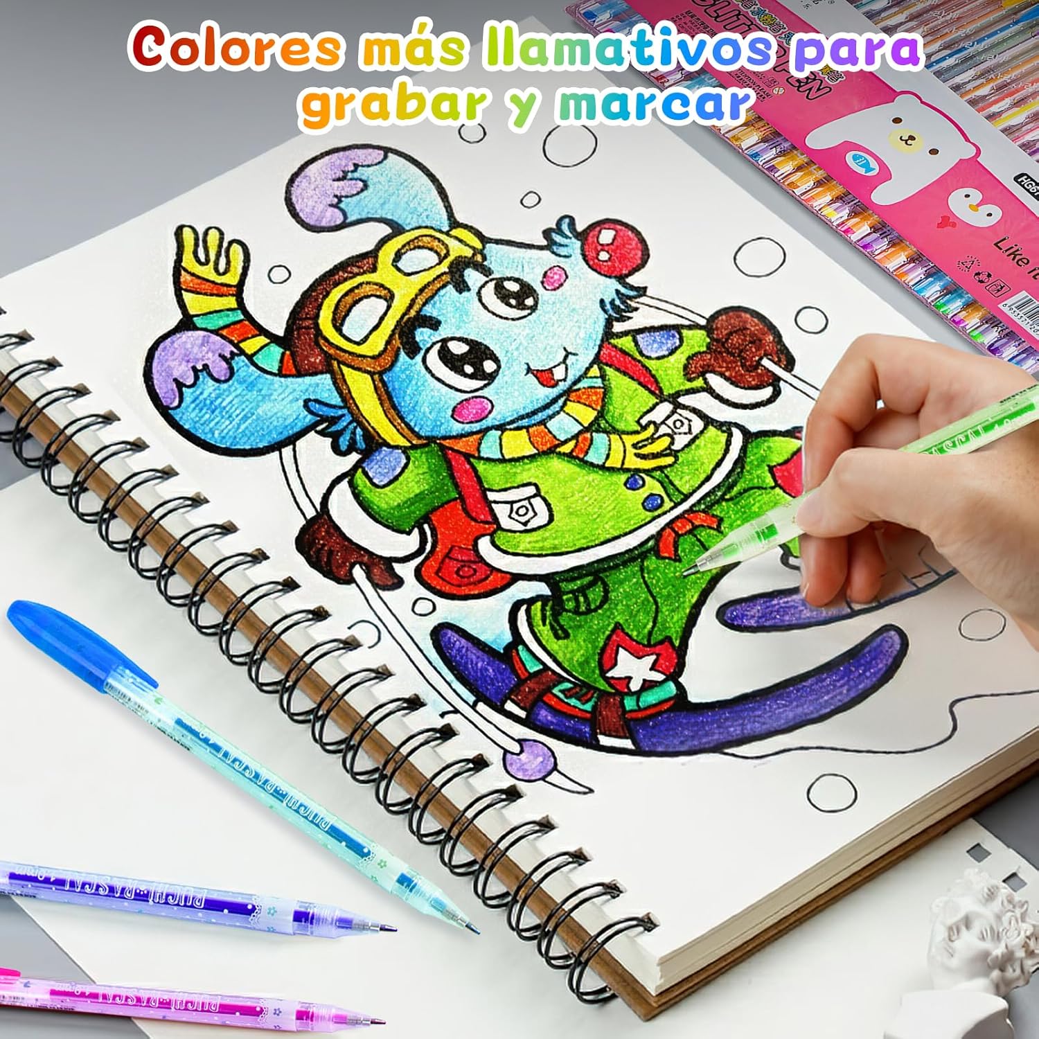 - Bolígrafos de Gel con Purpurina Liso: Con plumín de 1.0mm, la tinta sale suavemente La cobertura es buena, producirá una línea fina y suave cuando lo uses, añadiendo color a tus garabatos.