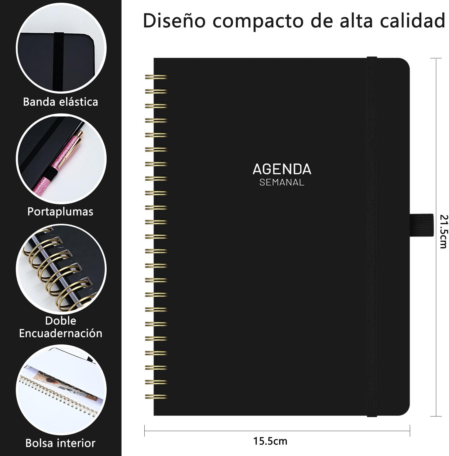 - 📝【Portátil y Versátil】Con medidas 21.5 x 15.5 cm (A5), tamaño compacto y perfecto para llevar en tu bolso, este daily planner es excelente para planificar, anotar tareas o llevar un diario. Su formato los hace ideales como agenda personalizadas o agendas organizadoras para facilitar tu día a día