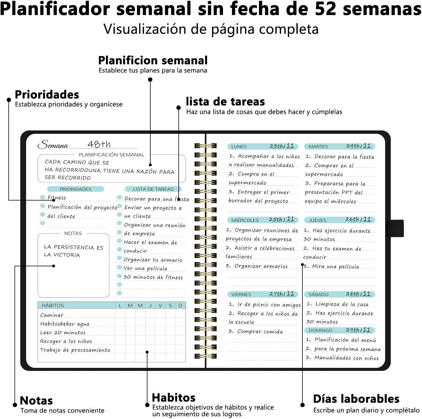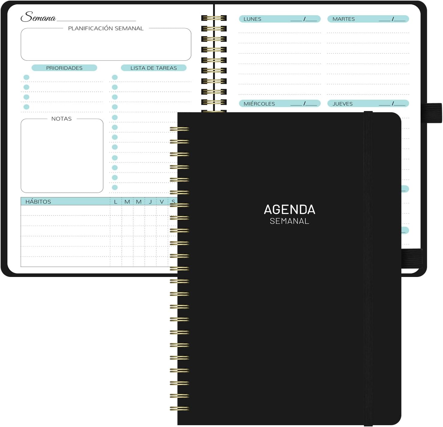 - 📝【Versatilidad para todos los usos】Perfecto como una agenda semanal, planificador semanal 2025 2026 o agenda personalizada. Su formato A5 y diseño sin fecha lo hacen apto para estudiantes, profesionales o quienes buscan agendas organizadoras para organizar su vida con flexibilidad. Úsalo para planificar comidas, ejercicios, viajes o metas personales, siendo una excelente opción para quienes prefieren una agenda espiral o una agenda diaria con espiral