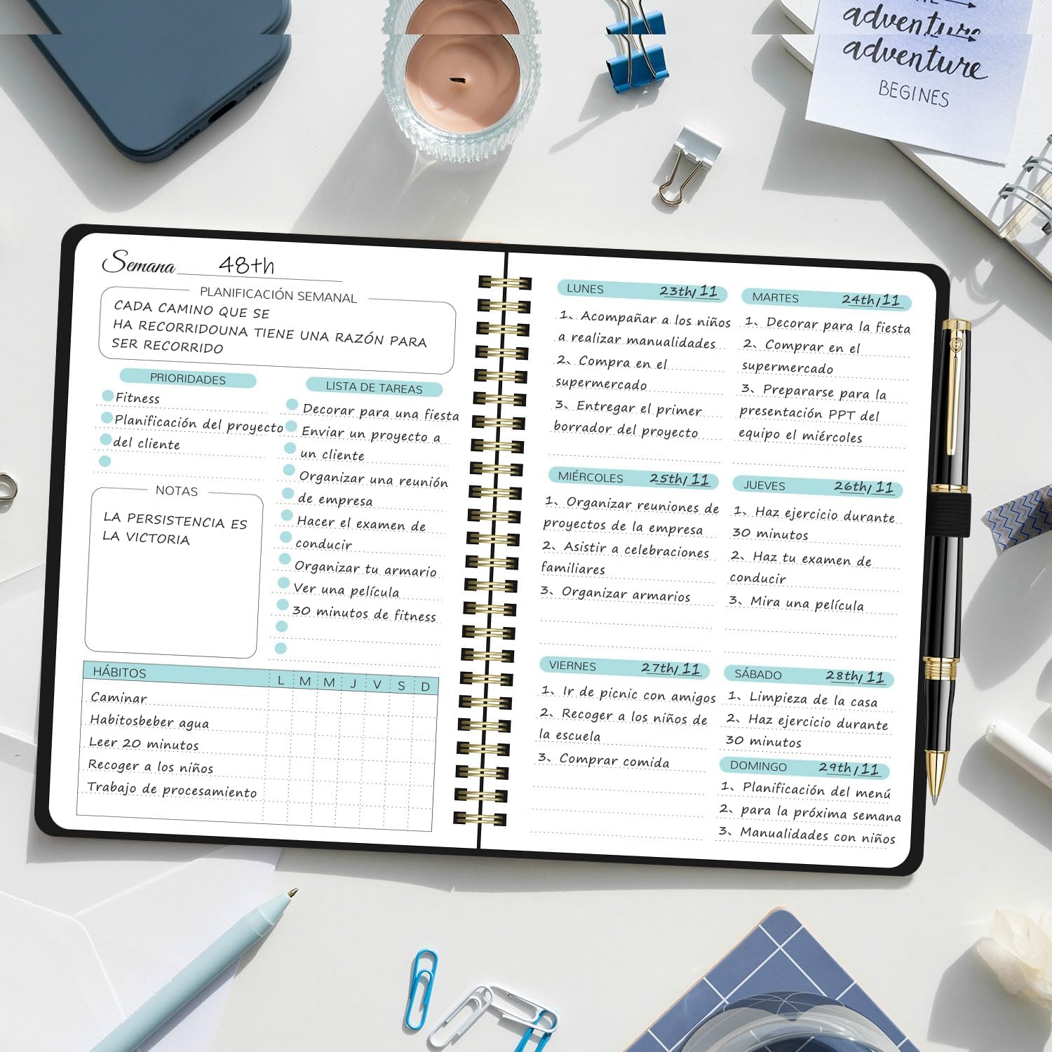 - 📝【Diseño encuadernado en espiral】Nuestro agenda espiral cuenta con un anillo de espiral doble de metal duradero para garantizar un uso suave y evitar que las páginas se caigan. Desprende páginas o gíralas fácilmente para comenzar un nuevo proyecto o revisar uno anterior, ideal para tu agenda diaria con espiral