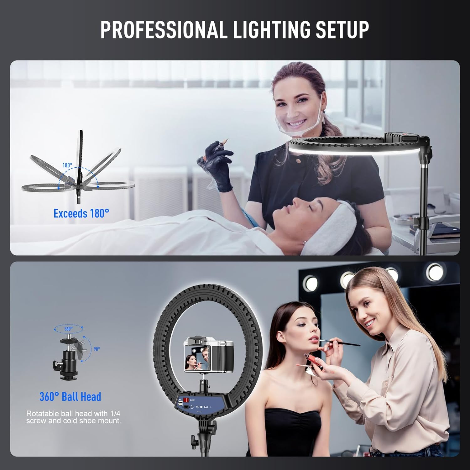 - PANEL TÁCTIL Y SÓLIDO TRÍPODE: KOSCHEAL aro de luz profesional dispone de un panel táctil. Puede cambiar el brillo y la temperatura del color en el panel táctil, lo que hace que su operación sea más fácil y eficiente. El trípode del anillo para estabilizar el anillo luminoso de maquillaje. La altura es ajustable de 48 cm a 210 cm; el bonito y estable diseño del cabezal de tres patas y el resistente sistema de bloqueo mantienen a salvo todas tus pertenencias.