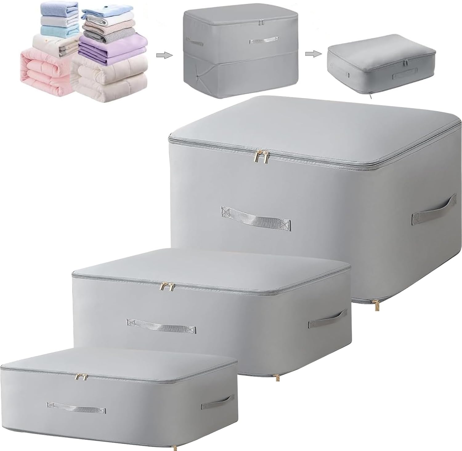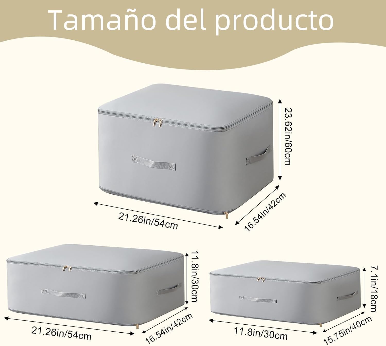 • ✅ Tres Tamaños para Todo Tipo de Artículos: Incluye 3 bolsas de distintos tamaños (54×42×60 cm, 54×42×30 cm y 40×30×18 cm) perfectas para guardar desde cobijas gruesas hasta ropa de temporada, juguetes o accesorios. ¡Organiza sin límites!