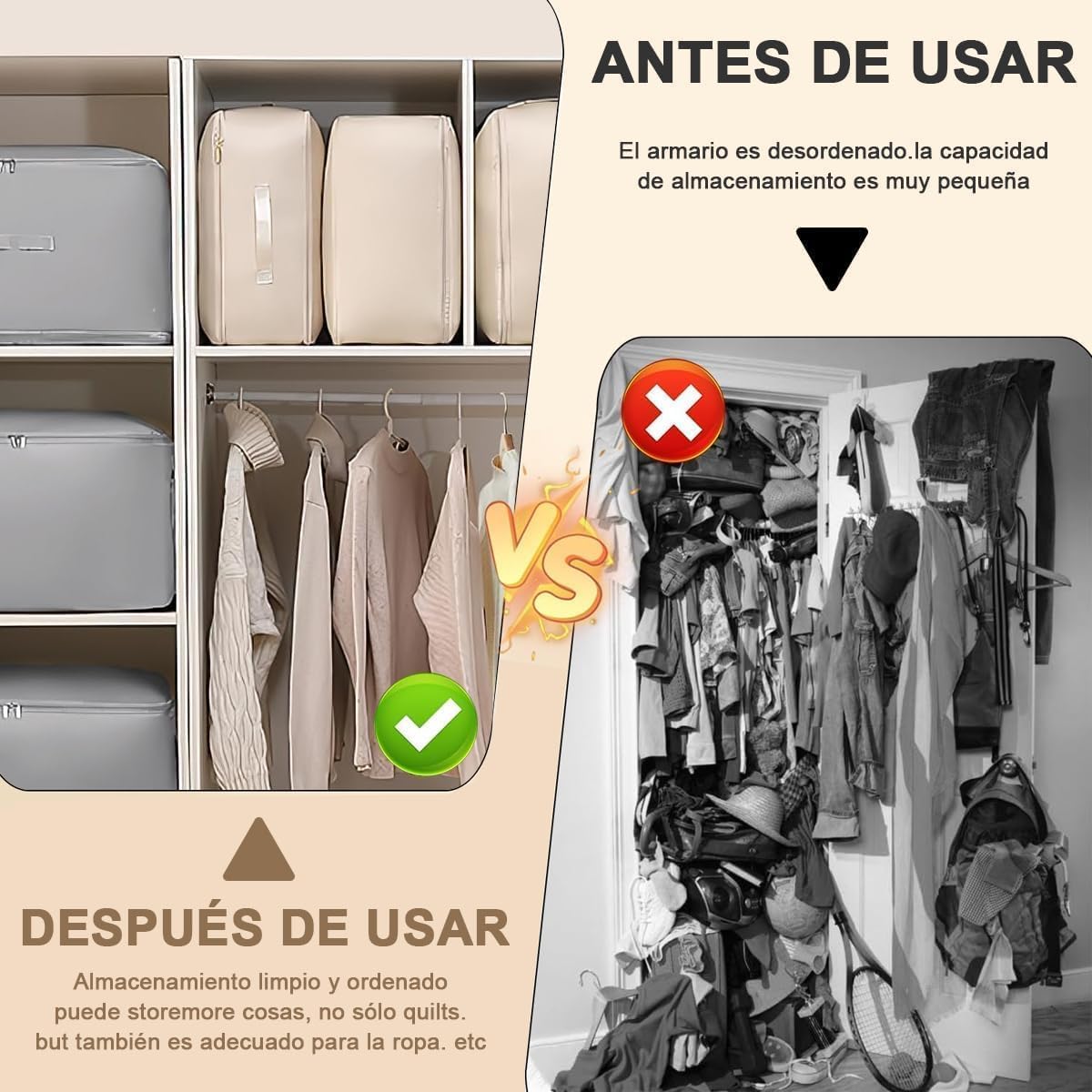 • ✅ Capacidad Expandible Inteligente: ¡Aprovecha al máximo tu espacio! Nuestra bolsa cuenta con una cremallera adicional que amplía su capacidad según lo necesites. Ideal para guardar ropa de cama, edredones o ropa voluminosa sin complicaciones.